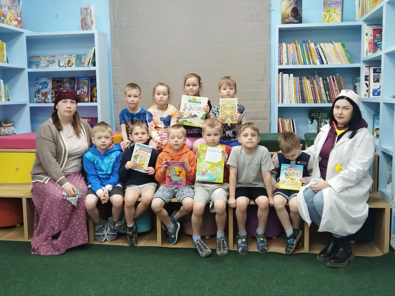 В рамках "Книжкиной недели" в модельной библиотеке прошёл литературный час " В стране любимых героев сказок Чуковского". Воспитанников группы "Капитошка" детского сада "Солнышко" попросила о помощи бабушка Фёдора из сказки Чуковского "Фёдорино горе". Ребята помогли ей отыскать всю сбежавшую посуду, научили её гигиеническим правилам. Также они посмотрели мультфильм " Мойдодыр", побывали у доктора Айболита. Это путешествие помогло детям вспомнить любимые сказки К. И. Чуковского, героев этих сказок, самые интересные моменты.