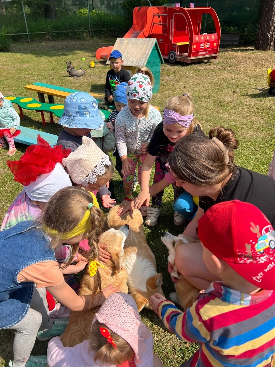 В детском саду "Солнышко" п. Гигант прошло летнее развлечение: « Забавные коржики: веселое шоу четвероногих друзей». Собаки породы корги приготовили для наших детей незабываемый праздник радости и веселья! Во время выступления , дети наблюдали забавные трюки, удивительные номера и трогательные моменты общения с очаровательными животными. Малыши узнали много интересного о собаках и даже попробовали себя в роли дрессировщика! Корги вызвали море улыбок, восторг и яркие эмоции!