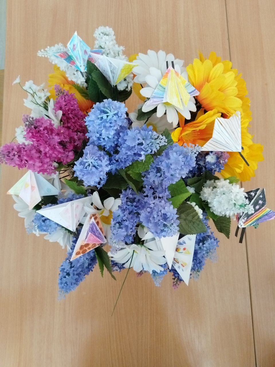 Некогда скучать дошколятам летом: прогулки, мультфильмы, экскурсии. А сегодня ребята занимались конструированием из бумаги. Оригами развивает у детей художественный вкус, мелкую моторику, внимание, формирует глазомер, умение следовать устным инструкциям и обучает различным приемам работы с бумагой, а также пространственное воображение. Вот каких красивых бабочек сделали ребята из группы "Непоседы".