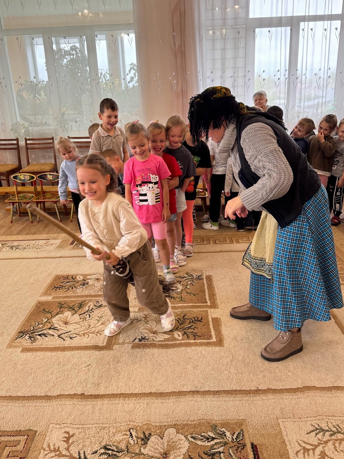 Кульминацией праздника стал зажигательный танец, в котором дети от души исполнили весёлый танец Бабы Яги. Представляете, как лихо они отплясывали под задорные ритмы, словно сами только что выпорхнули из сказочного леса.