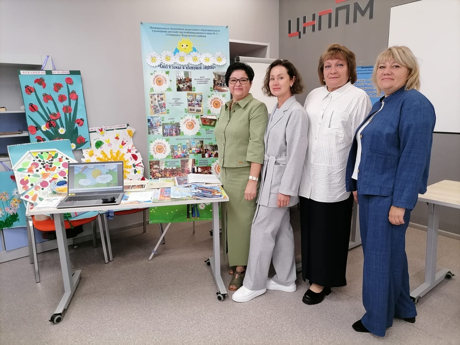 На региональном августовском педагогическом марафоне, который проходил 19 и 20 августа заместитель заведующего по ВМР Гребеникова Татьяна Леонидовна, воспитатели Ваганова Ирина Владимировна, Титова Екатерина Александровна и Нигай Эльвира Халиловна представляли Ковровский район. Педагоги выступали на тематической площадке марафона «Семья – традиции», поделившись опытом работы по взаимодействию с семьями воспитанников, представив фильмы «Сказ о семье и цветущей стране», «Сказ о Малыге».
