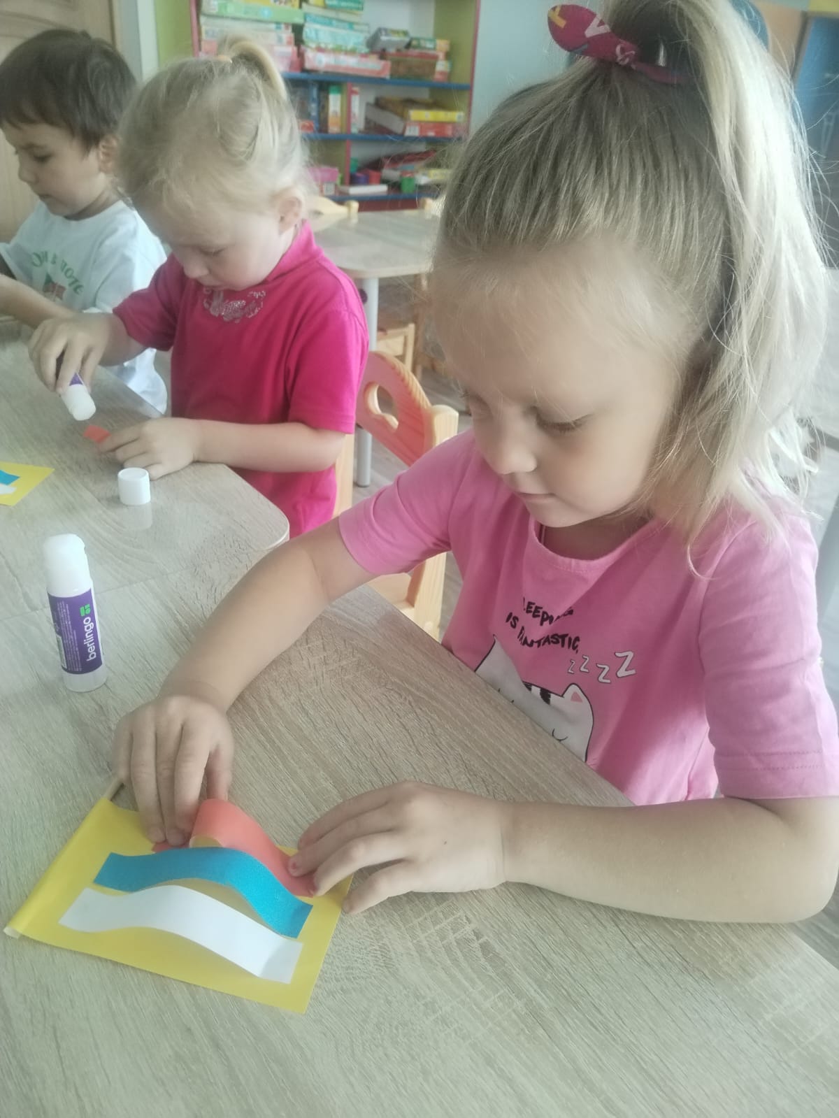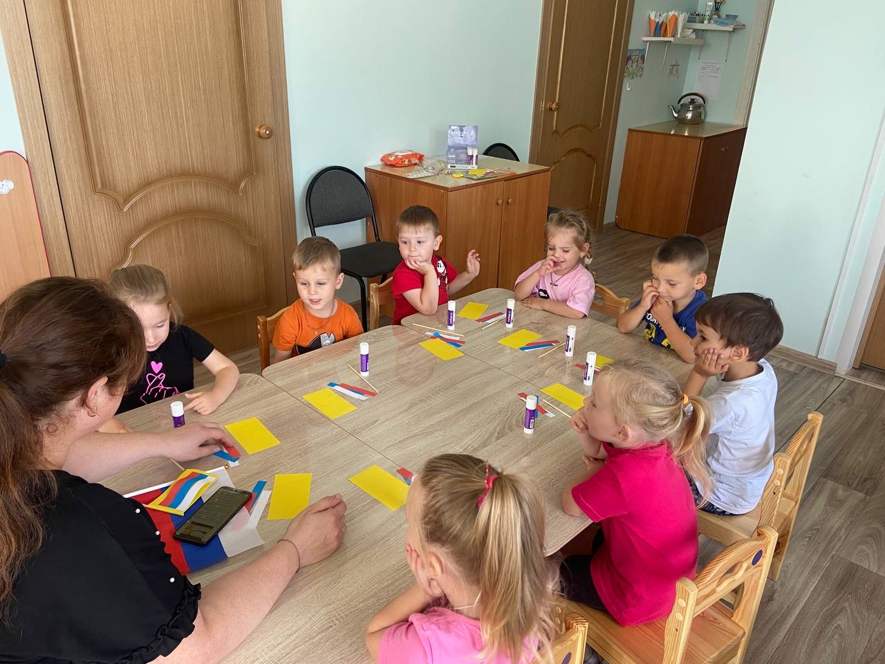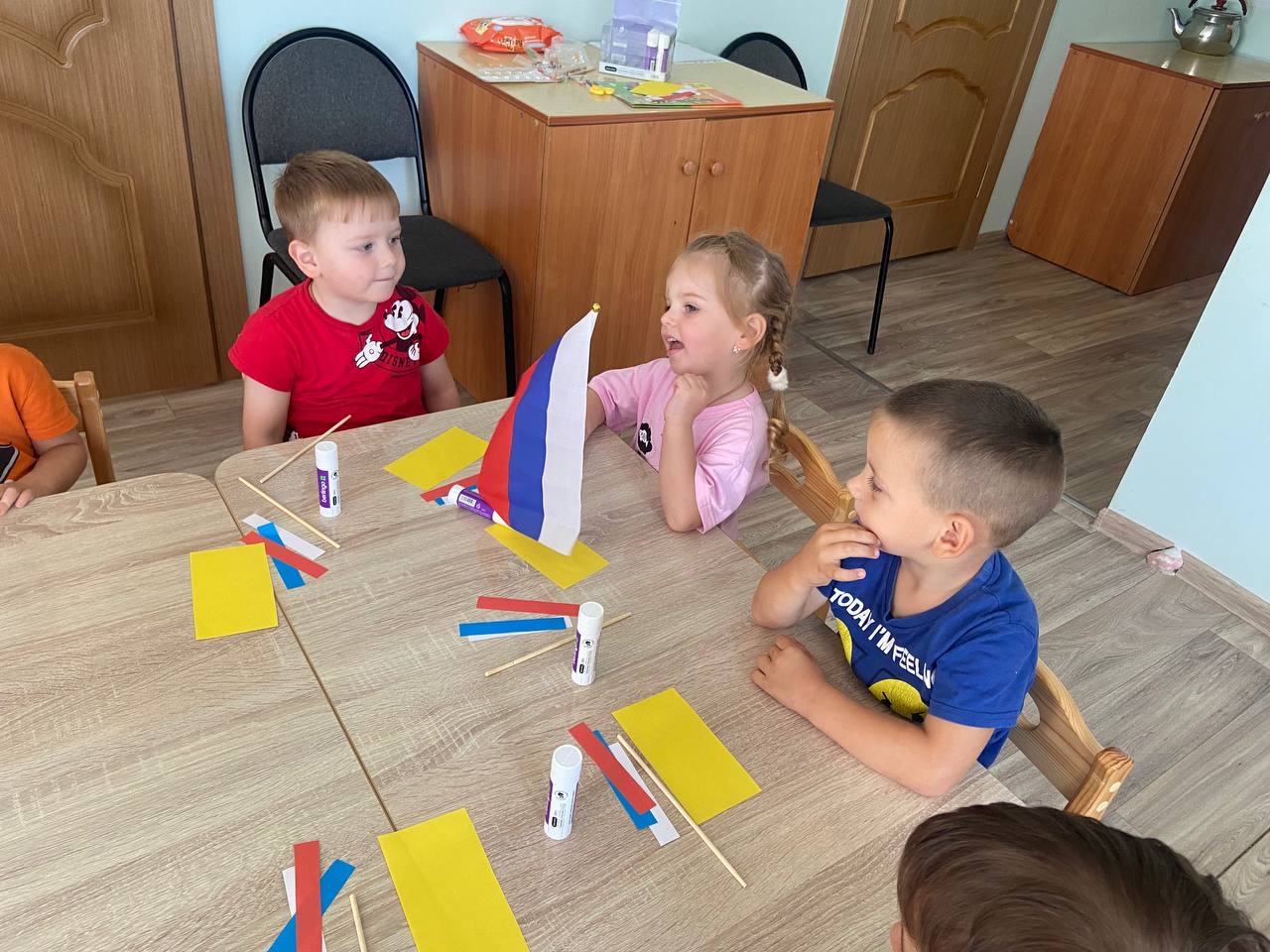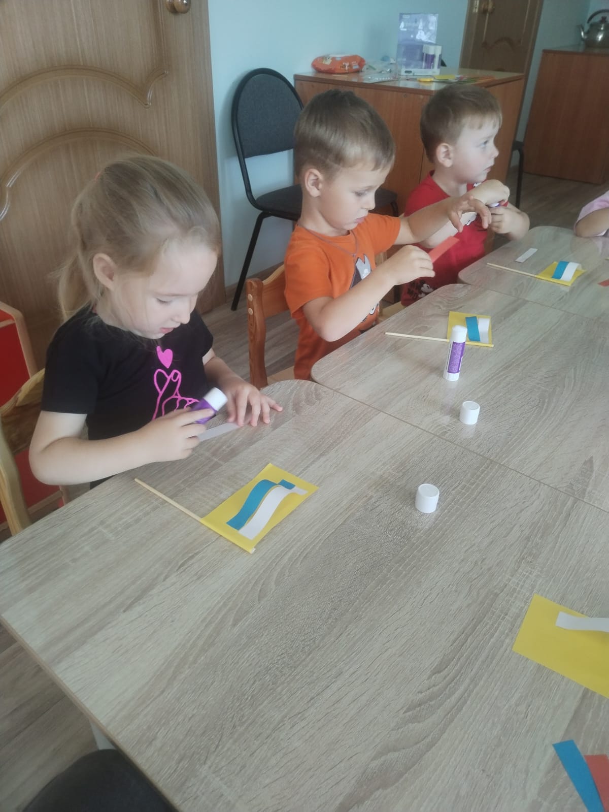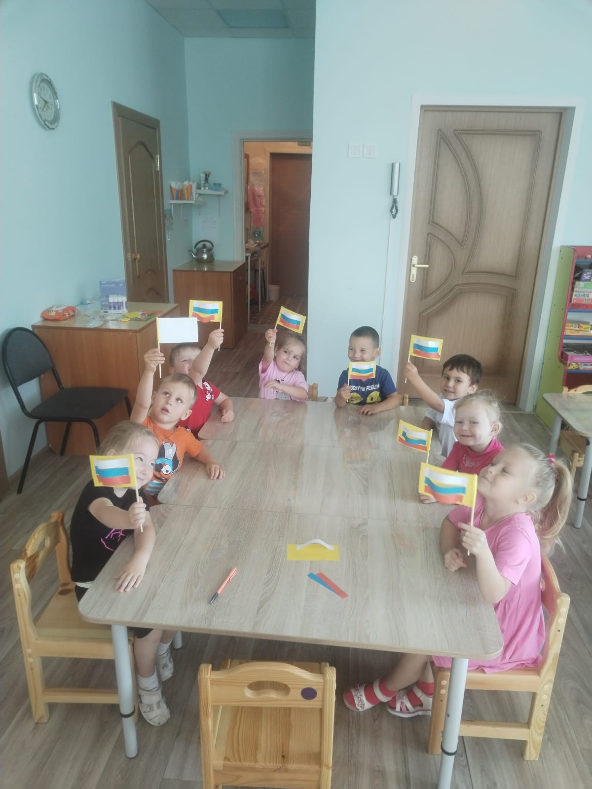 В День Российского флага в нашем садике №11 "Солнышко" (п. Малыгино) воспитатель Ермилова Екатерина Алексеевна провела на группе "Веселые ребята" мастер-класс по изготовлению Российского флага с помощью нетрадиционной техники. Ребята остались с подарком, сделанным своими руками - трехцветными символами России!