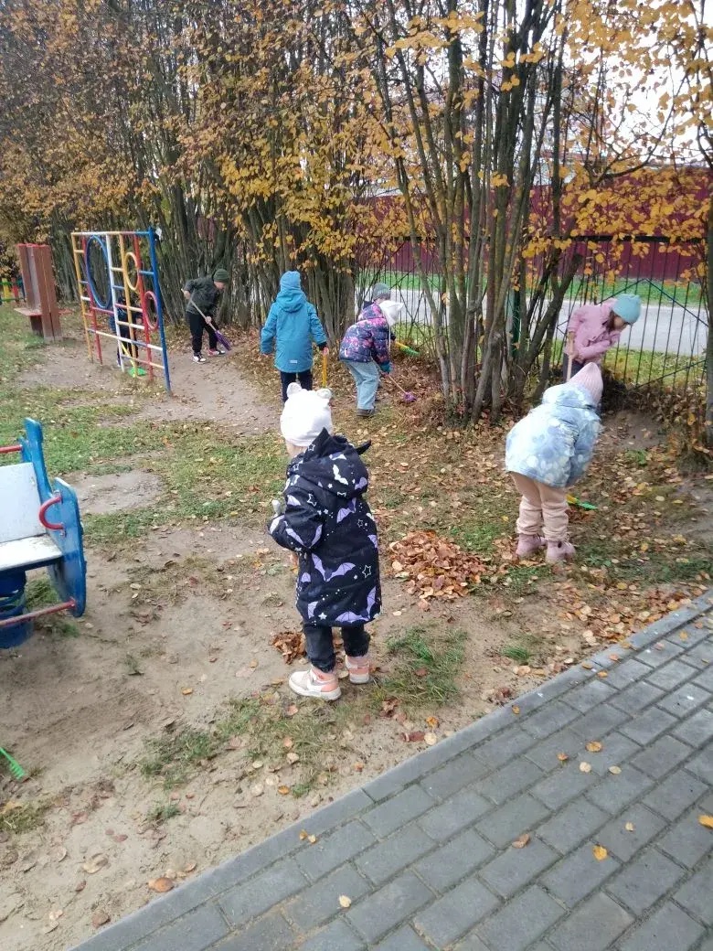 Трудовая деятельность дошколят: осенняя уборка участка детского сада