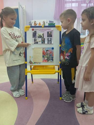 В детском саду №11 «Солнышко» в деревне Ручей прошли тематические беседы, посвященные Дню Героев Отечества. Дети познакомились с историей памятной даты, узнали, кто такие Герои Отечества, какие существуют государственные награды, а также услышали рассказы о героях прошлого и настоящего. Ребята обсудили, как можно проявить героизм в повседневной жизни, и кто такие спасатели — современные герои, которые помогают людям. Ребята рассмотрели портреты Героев Отечества, изображения орденов и медалей.