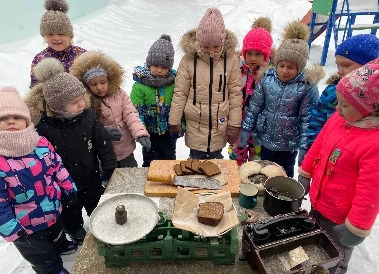 Совместно с сотрудниками детского сада познакомили воспитанников с понятиями: «блокада», «дорога жизни», «продовольственная карточка» и узнали, как во время войны дети помогали фронту.