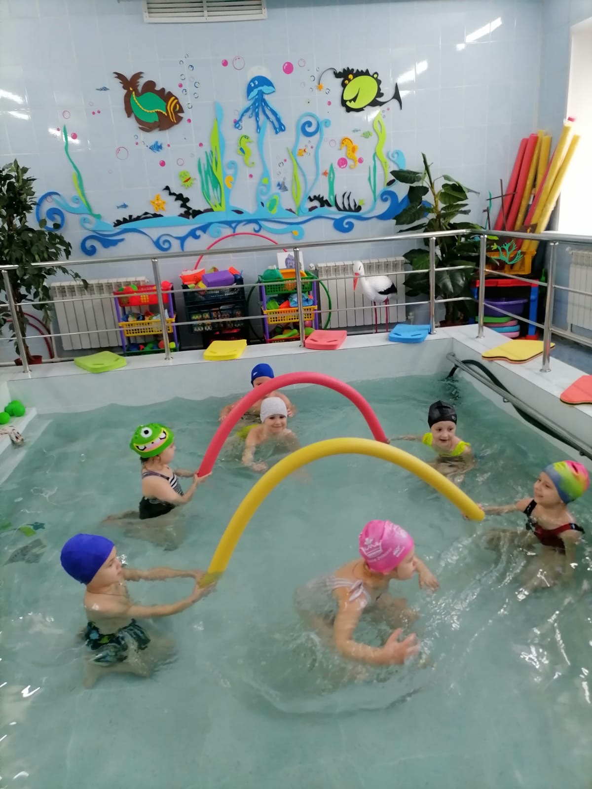 Занятия в бассейне, наиболее гармоничная и "экологичная" физическая нагрузка, одно из эффективных средств укрепления здоровья и физического развития ребенка. Не перегружая детский организм, оно тренирует максимальное количество органов и систем. В воде ребенок находится в состоянии гидростатической невесомости, его опорно-двигательный аппарат разгружается от давления тела. Это создает условия для профилактики нарушений осанки, увеличивает двигательные возможности организма.